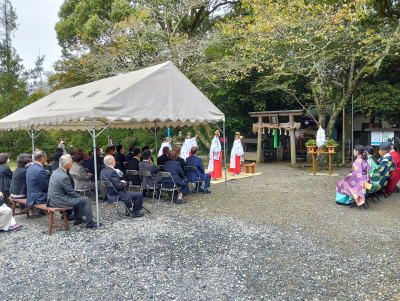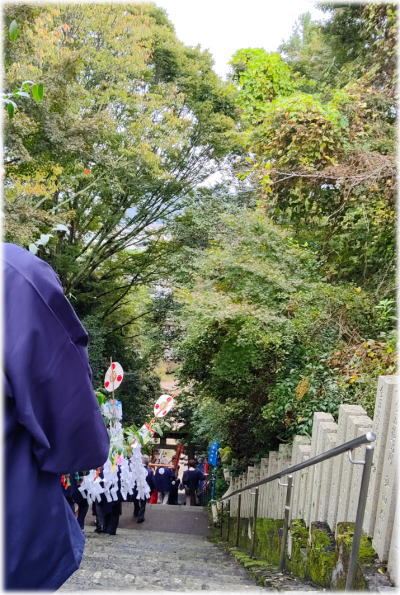 本社祭、招魂社祭、紀の国やっちょんの皆さんに踊りの披露をしていただき、その後嵯峨浜御旅所までの約500Mを渡御する神事が行われました。