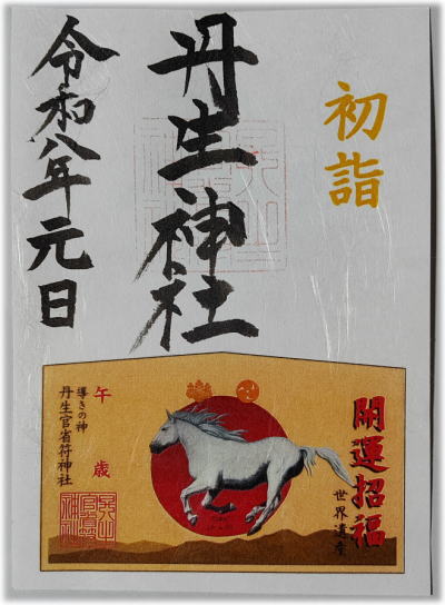 令和8年午歳大絵馬の絵柄御朱印です。1月8日以降は、初詣の印がない御朱印になります。