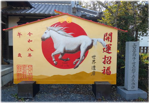 社頭に掲げられた午歳大絵馬が参拝される皆様を開運招福へと導きます。